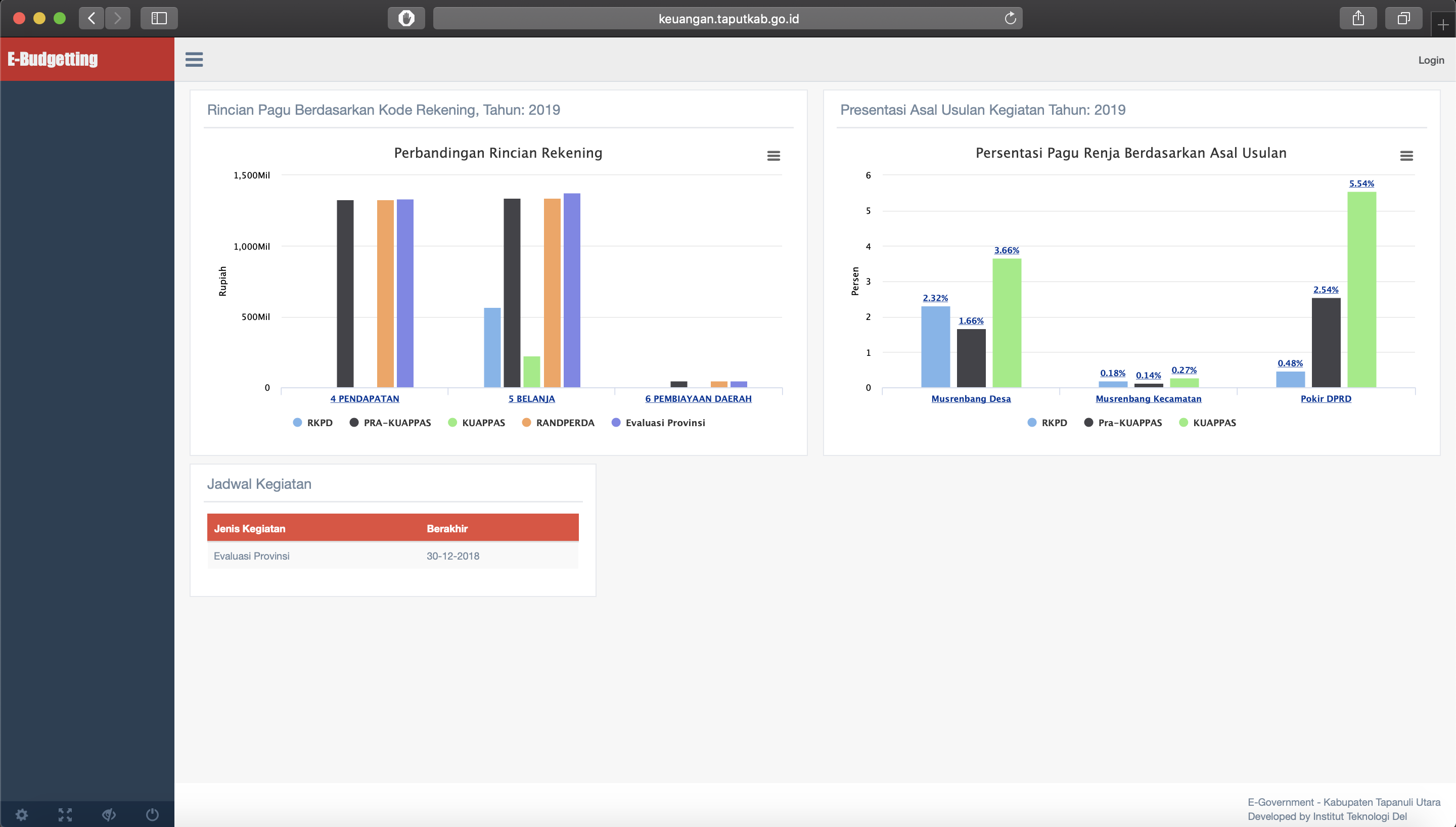 Aplikasi E PERENCANAAN ini sudah digunakan di dua kabupaten, TOBA SAMOSIR dan TAPANULI UTARA
